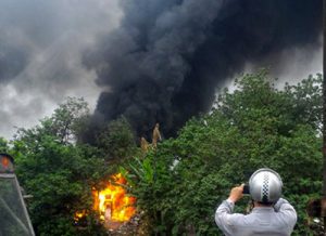 Chiếc xe bồn chở xăng cháy nghi ngút tại khu đô thị Đền Lừ (Hoàng [...]