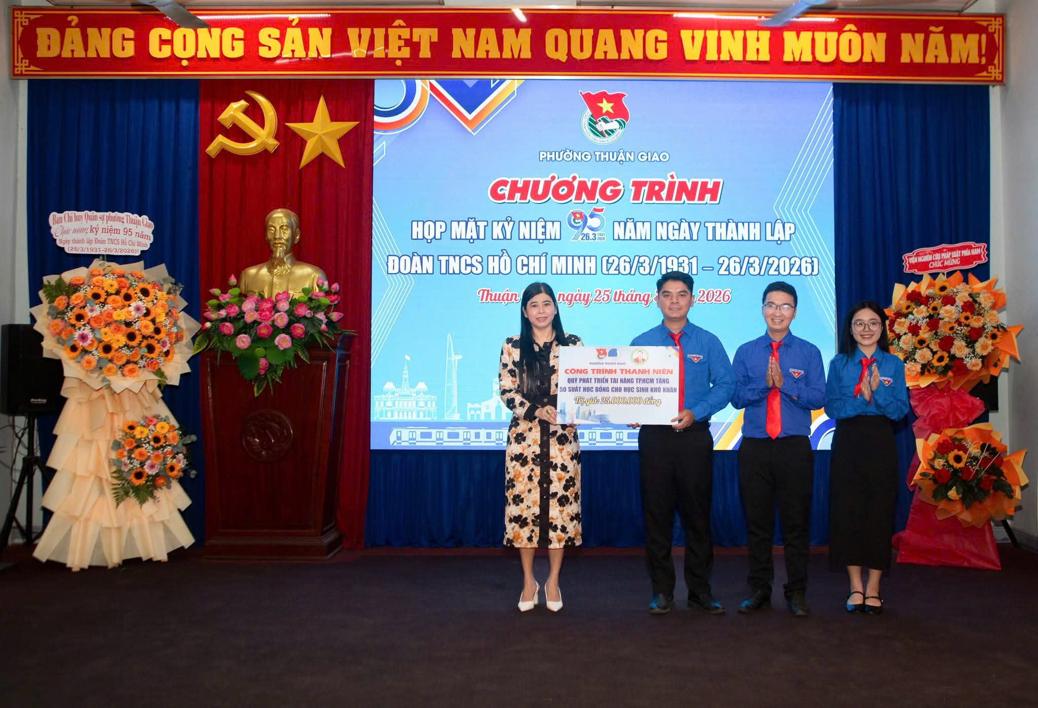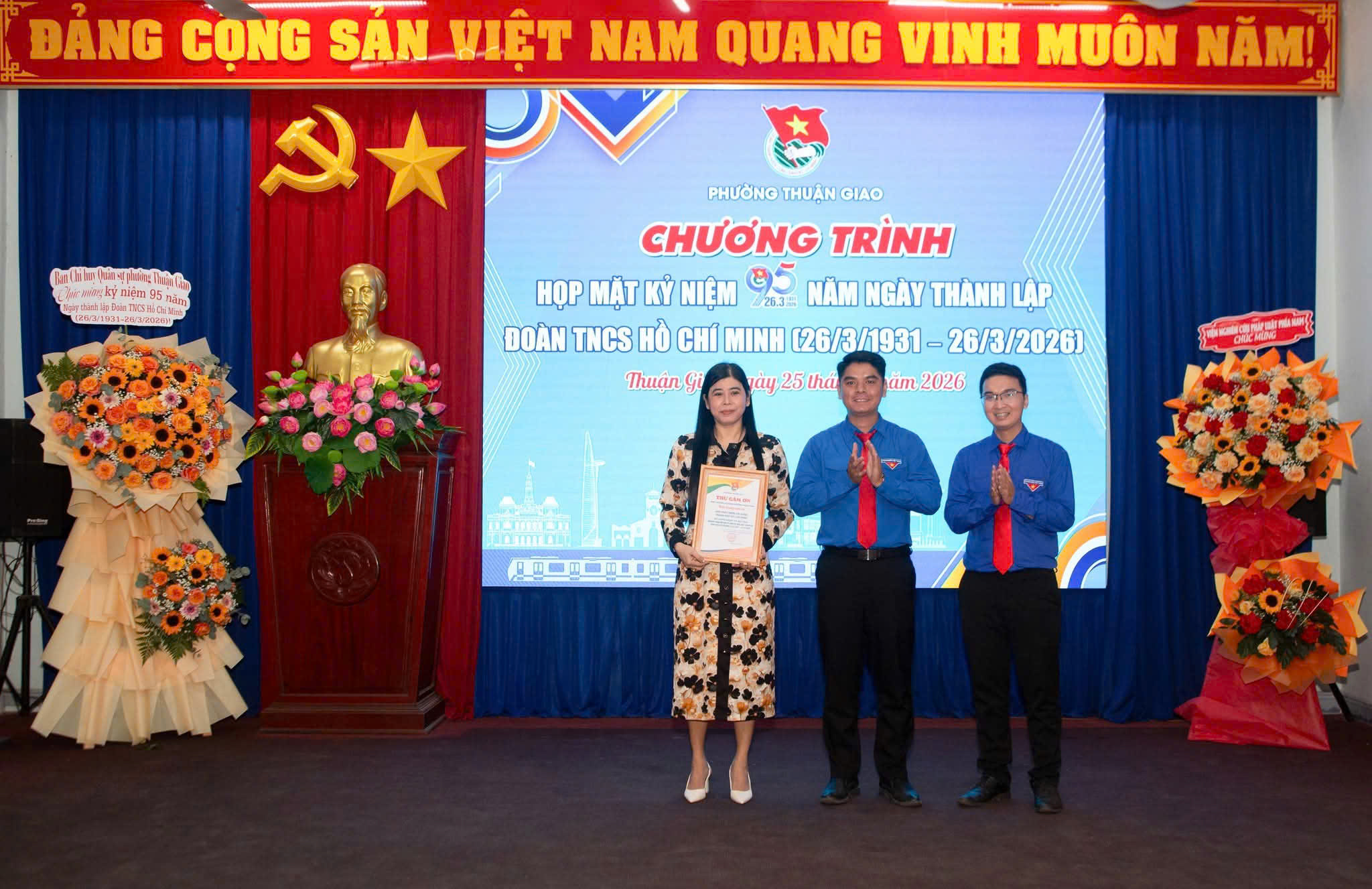 SLRI – Tối ngày 25 tháng 3 năm 2026, tại Hội trường Đảng ủy phường Thuận Giao, Đoàn Thanh niên phường đã long trọng tổ chức chương trình họp mặt kỷ niệm 95 năm Ngày thành lập Đoàn Thanh niên Cộng sản Hồ Chí Minh (26/3/1931 – 26/3/2026).