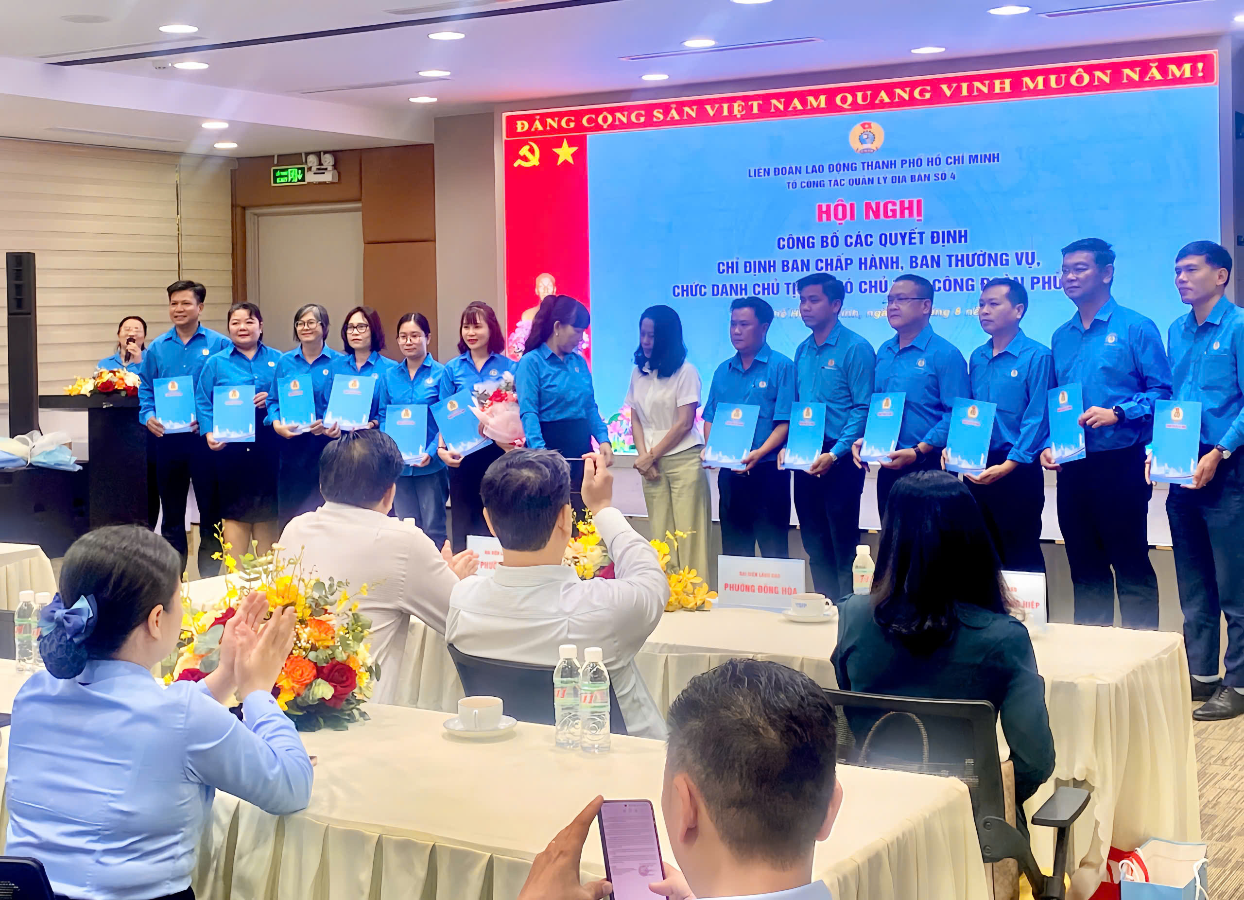 Trong không khí trang trọng, các quyết định Ban Chấp hành, Ban Thường vụ, Chủ tịch và Phó Chủ tịch Công đoàn phường đã được công bố, trao cho những cán bộ có năng lực, uy tín và tâm huyết. Đây là bước kiện toàn cần thiết, tạo động lực để Công đoàn phường tiếp tục phát huy vai trò nòng cốt trong việc chăm lo, bảo vệ quyền và lợi ích hợp pháp, chính đáng của đoàn viên, người lao động.